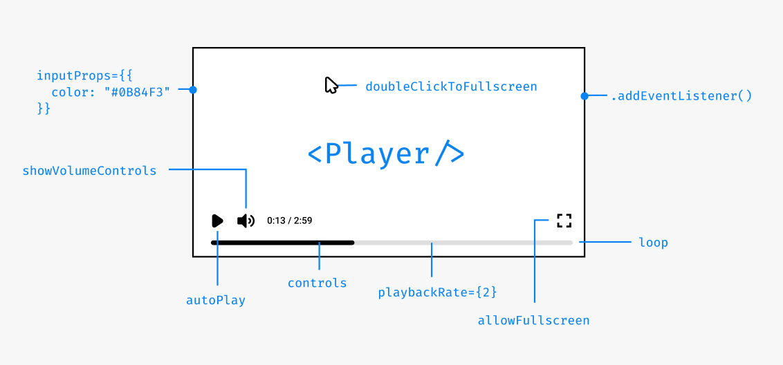 You can dynamically update the props of the video at runtime, which creates an experience that stuns user: videos that react to their user input!